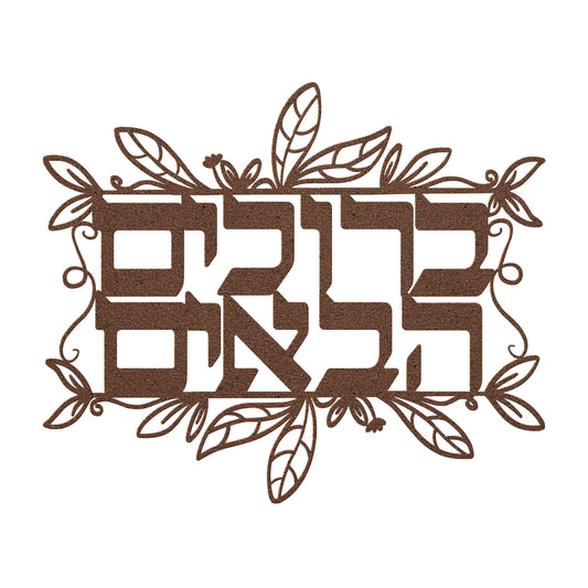 A Hebrew metal sign "Baruchim Haba'im" with leaves
