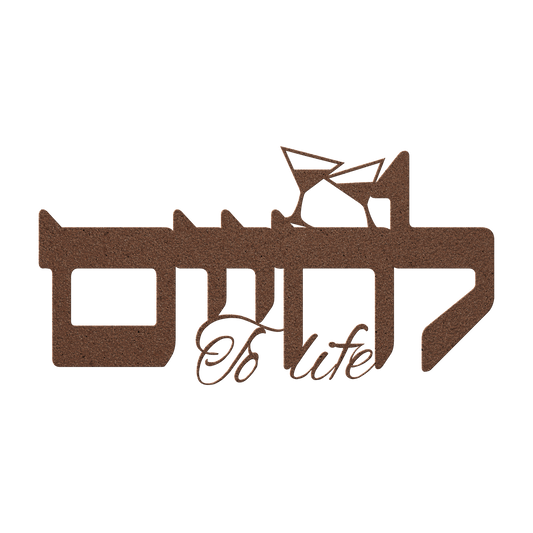 A Hebrew metal sign "to life" (L'chaim)- Caption