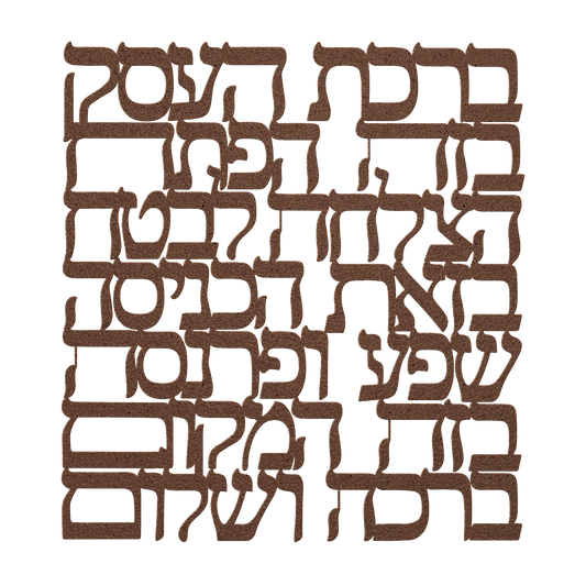 Hebrew metal sign "Blessed are You, Lord our God, King of the universe, who releases the bound"