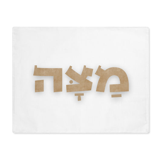 Matzah Cover for the Holiday Table with 'Matzah' Inscription in Hebrew - White and Brown