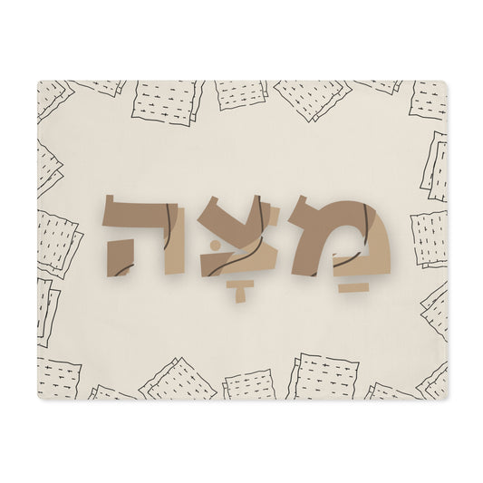 Matzah Cover for the Holiday Table with 'Matzah' Inscription in Hebrew - Beige and Two Shades Inscription with Matzot Illustrations