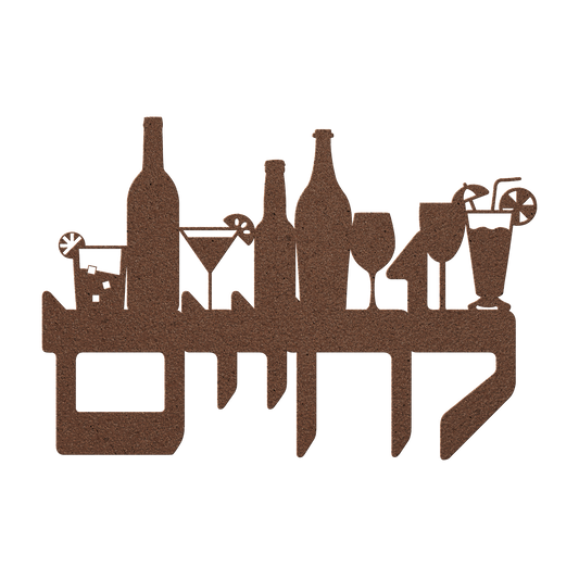 A Hebrew metal sign "to life" (L'chaim) with bottles