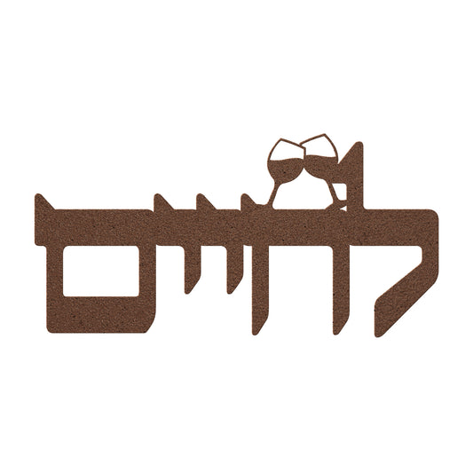 A Hebrew metal sign "to life" (L'chaim)- Caption