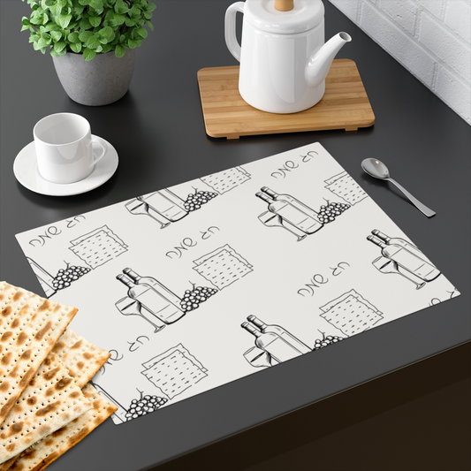 Matzah / Challah Cover Or Holiday Table Placemat - Wine & Matzah With Hebrew "Chag Sameach" (Happy Holiday)
