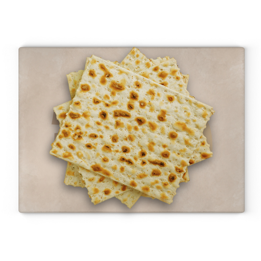 Passover Matzah Glass Board with 'Matzah' Inscription in Hebrew - Two Shades Inscription with Matzot Illustration