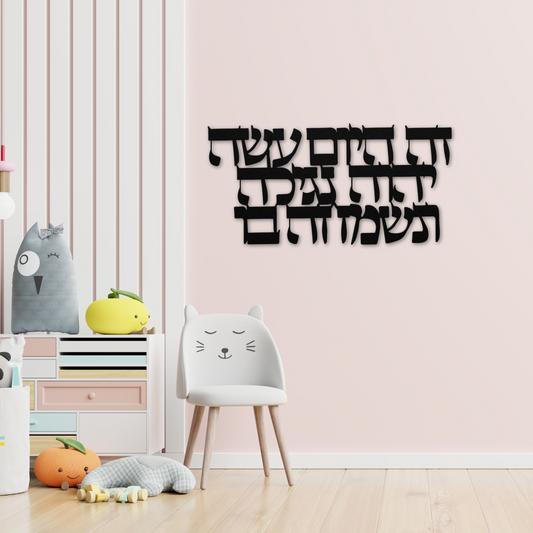 Hebrew metal sign - Psalms verse: "This is the day that the Lord has made; let us rejoice and be glad in it"