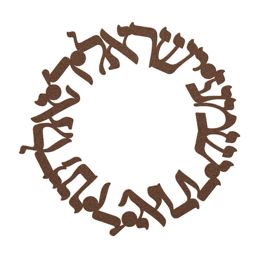 A Hebrew circle metal sign “Shema Yisrael” prayer