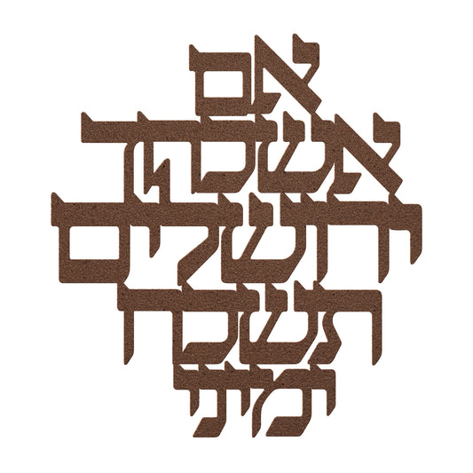 A Hebrew metal sign "If I forget you, O Jerusalem, let my right hand forget its skill"