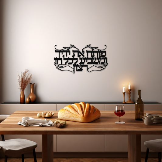 A Hebrew metal sign "You open your hand and satisfy the desire of every living thing"
