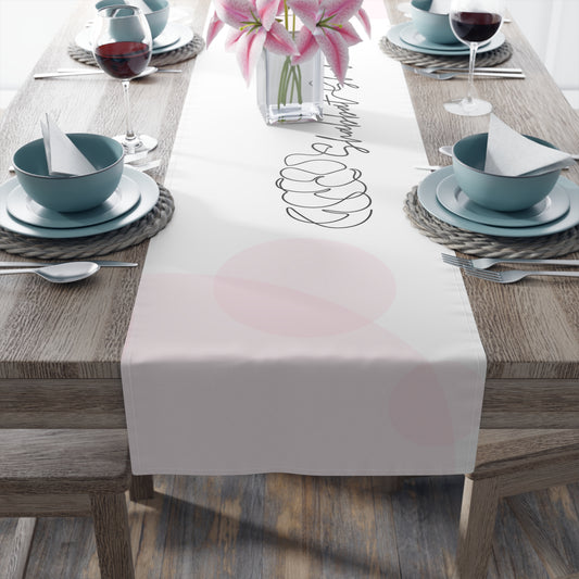 Shabbat Table Runner With Shabbat Shalom Caption - Pink Shades