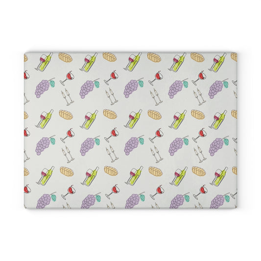 Shabbat Challah Glass Board - Shabbat Illustrations