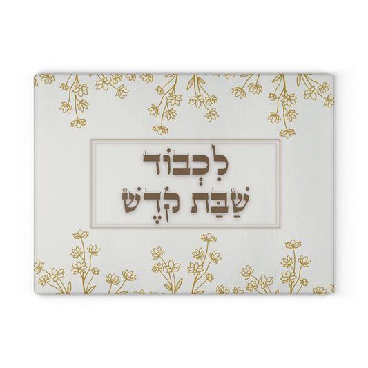 Shabbat Challah Glass Board With Hebrew Inscription 'Lechavod Shabbat Kodesh'
