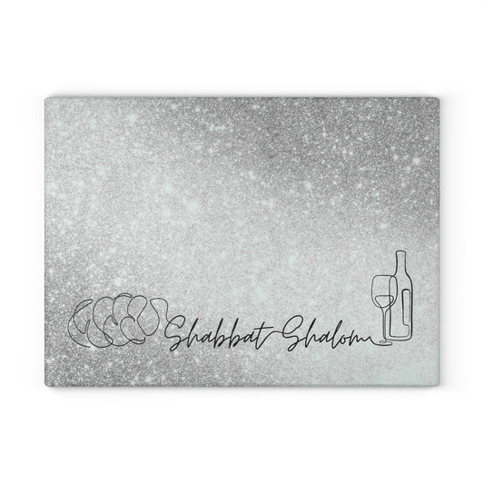 Shabbat Challah Glass Board With Shabbat Shalom Caption - Sparkle Silver Shades