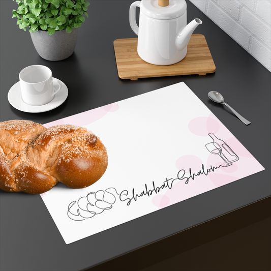 Challah cover/ placemat for Shabbat table with Shabbat Shalom caption - Pink circles