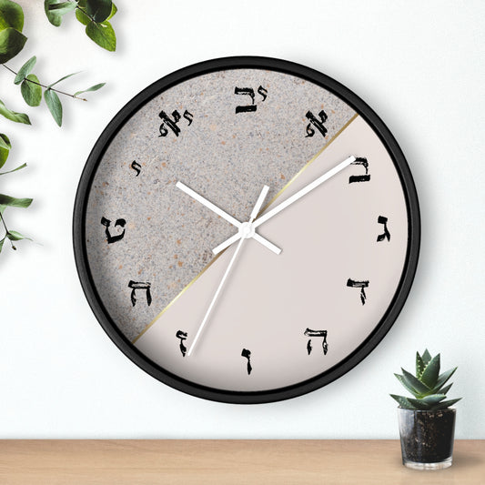 Hebrew letters wall clock with concrete and marble print