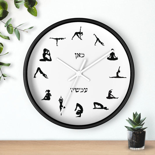 Yoga positions and Hebrew words "Here" & "Now" Wall Clock