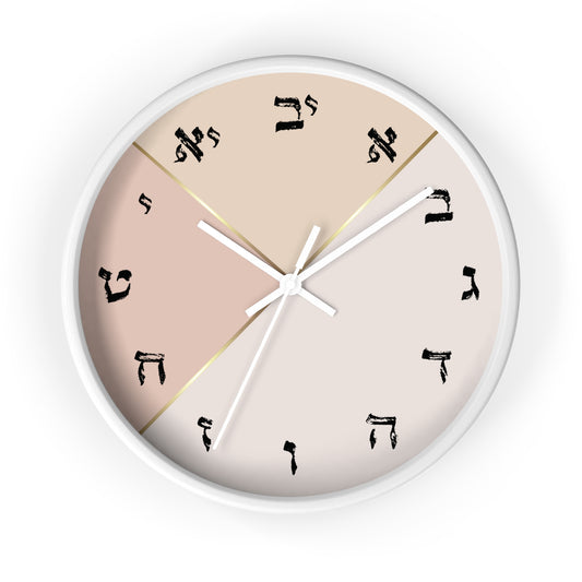 Hebrew letters wall clock with pastel and gold print tones