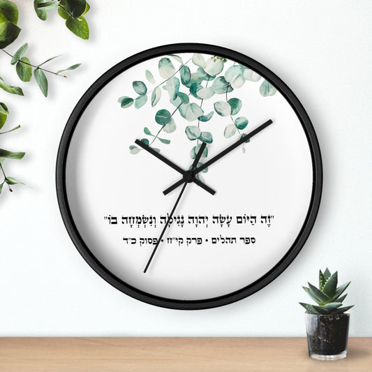 Judaica wall clock with a Hebrew quote from the Psalms