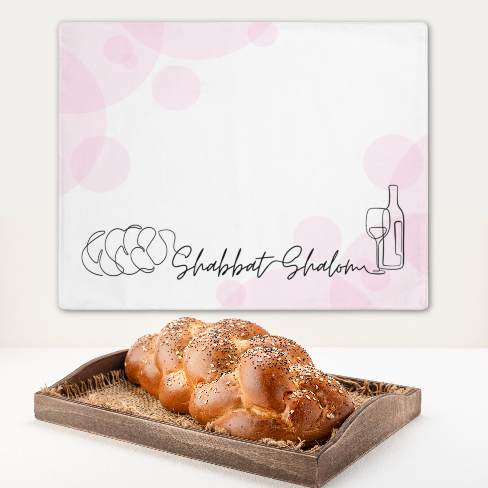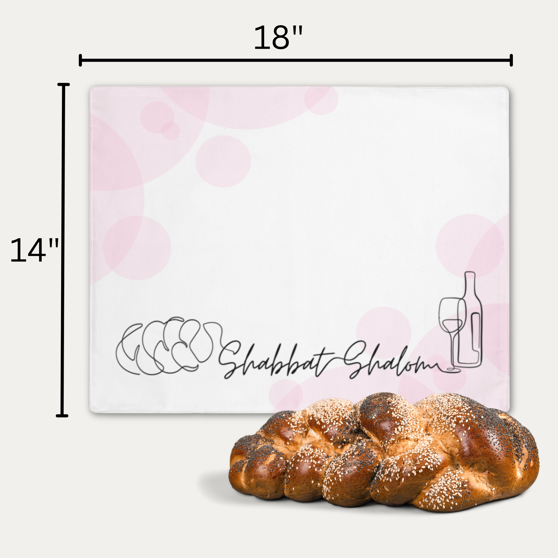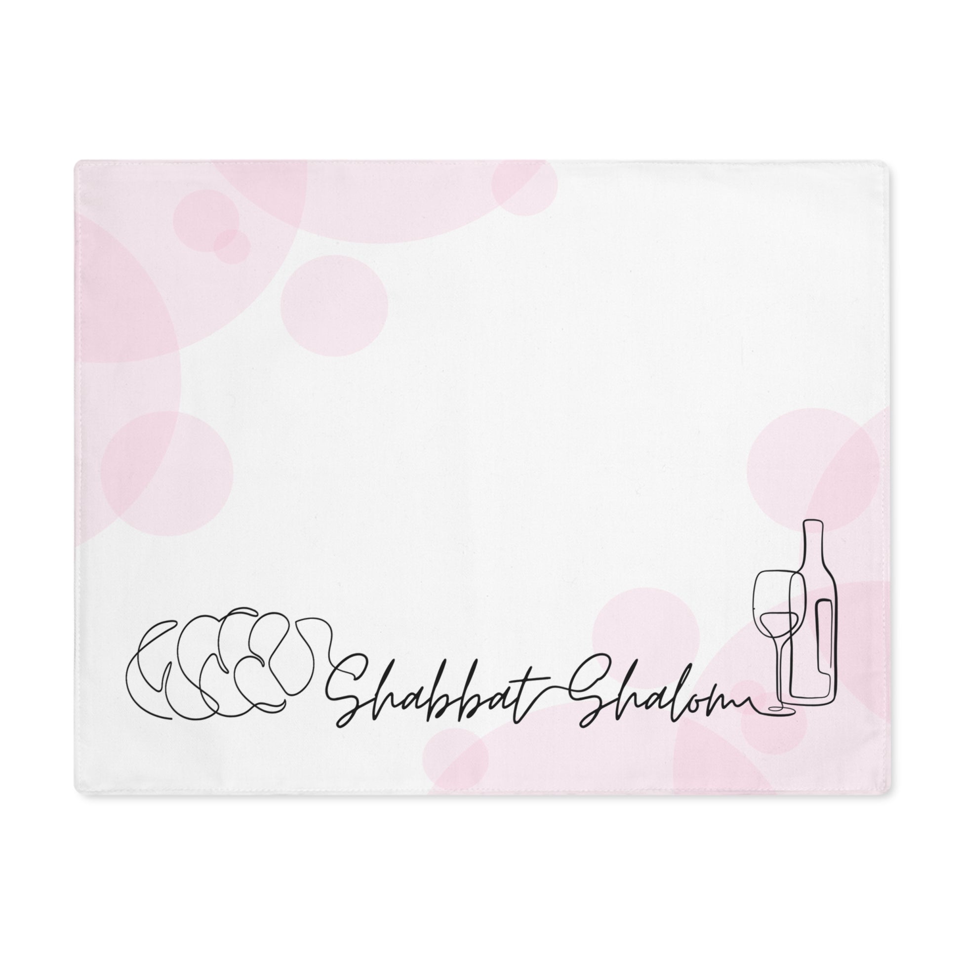 Challah cover/ placemat for Shabbat table with Shabbat Shalom caption - Pink circles