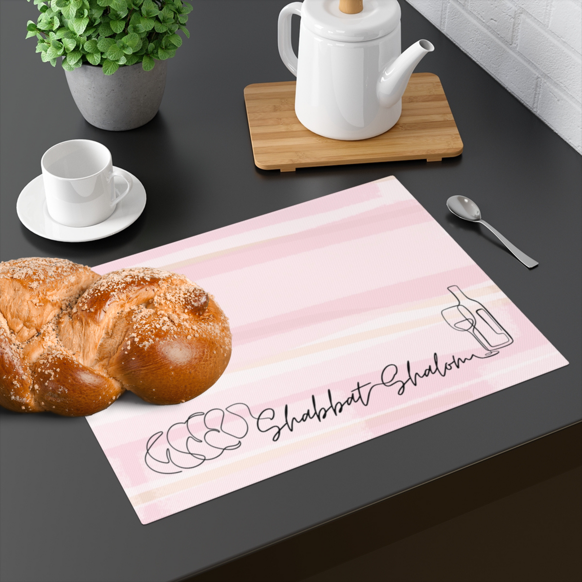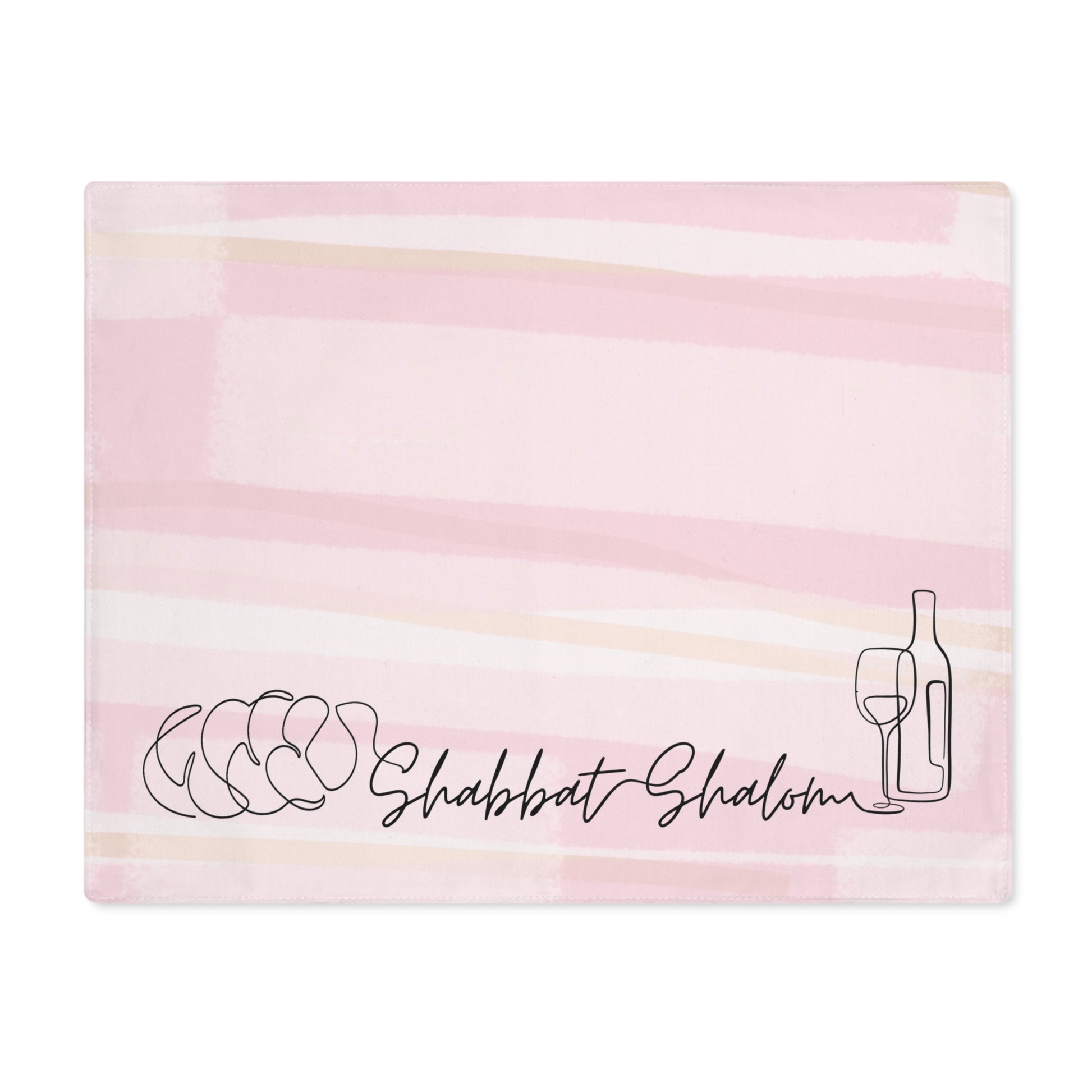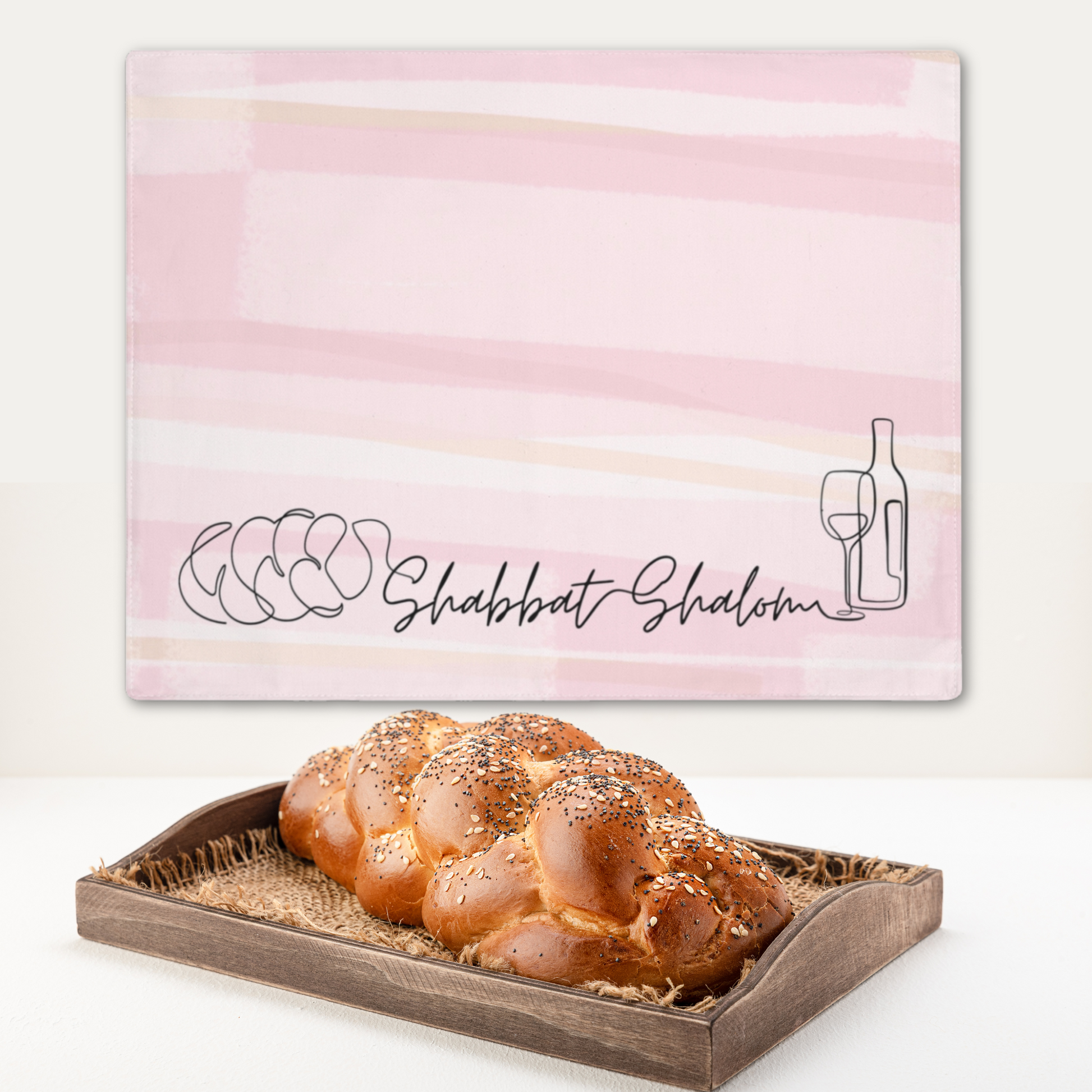 Challah cover/ placemat for Shabbat table with Shabbat Shalom caption - Pink shades