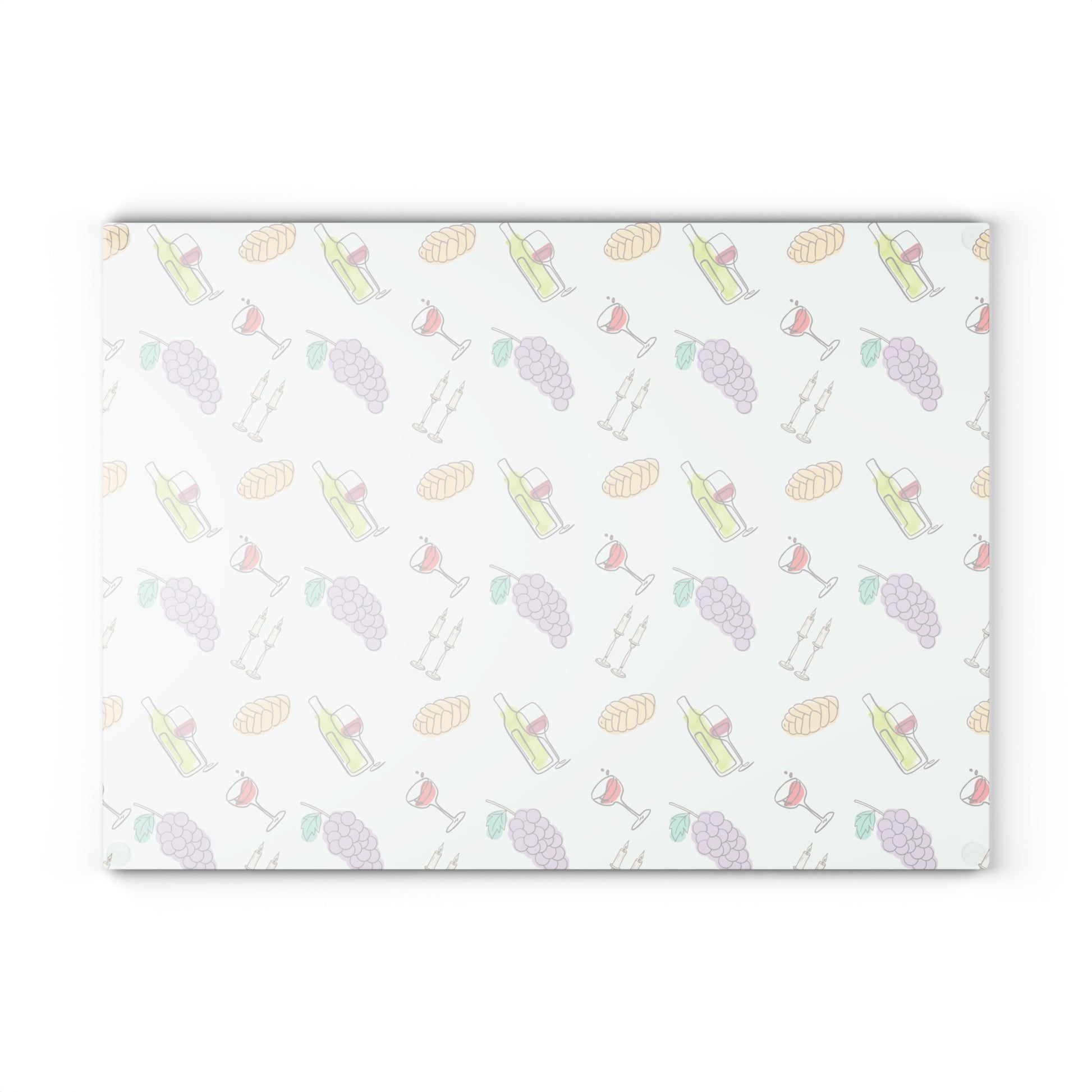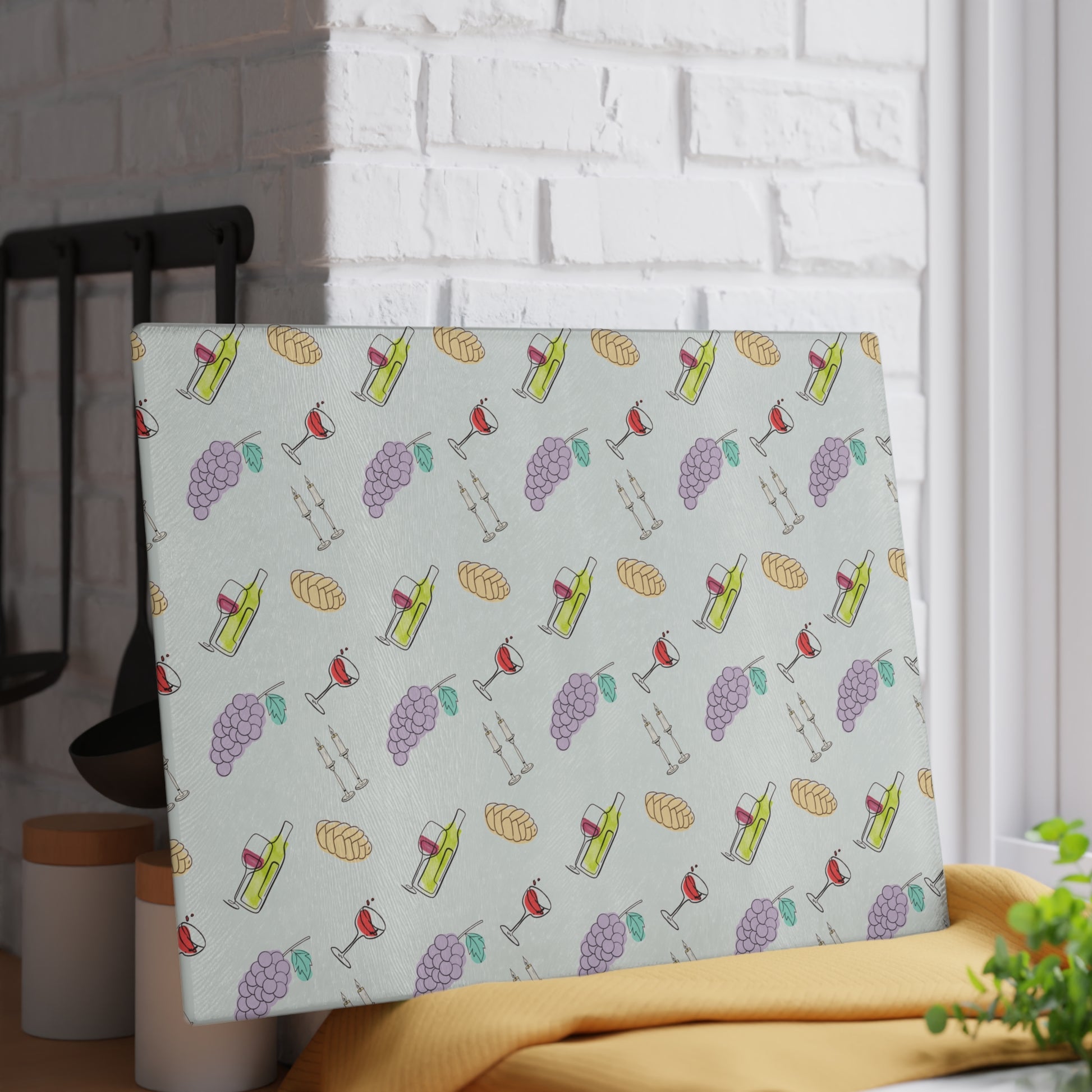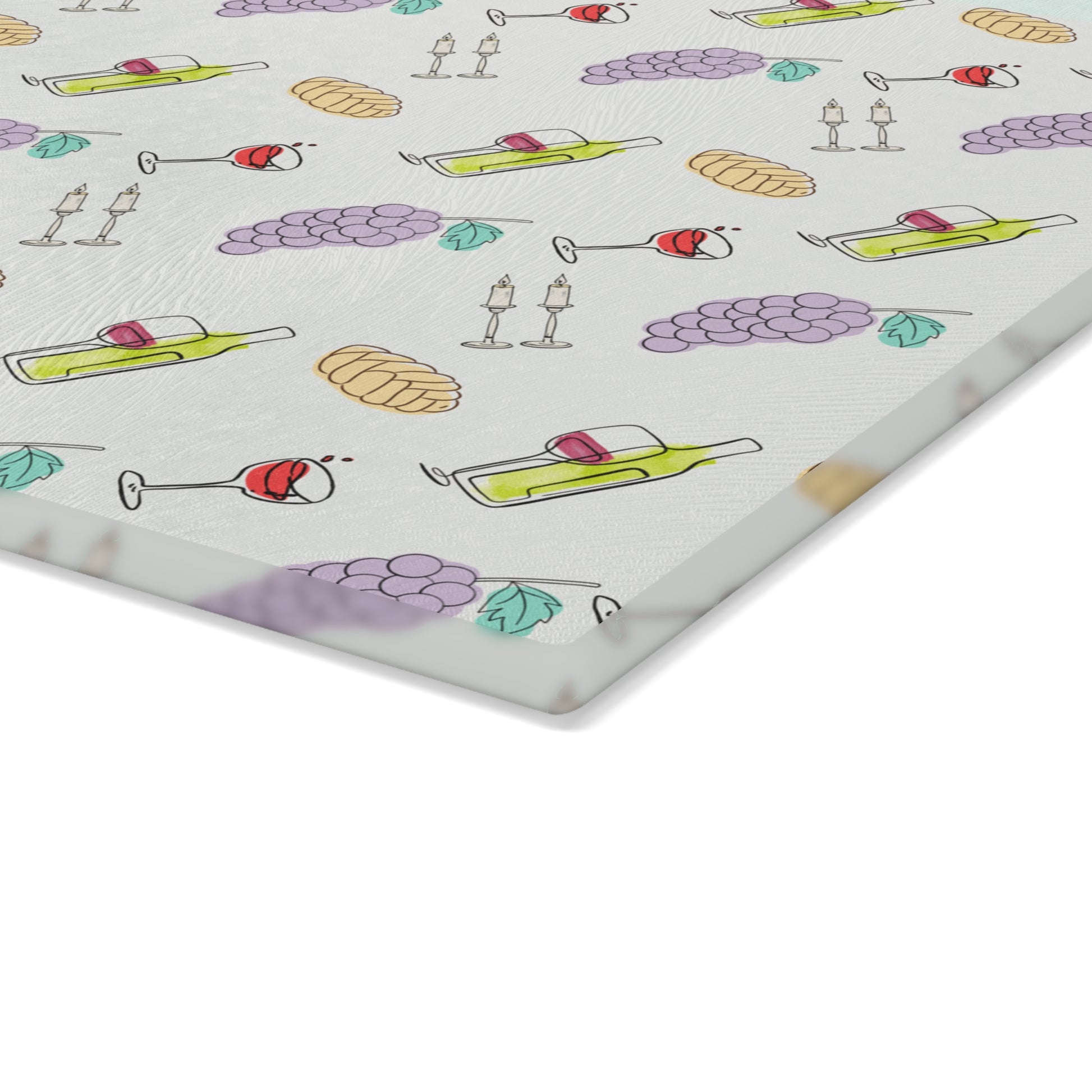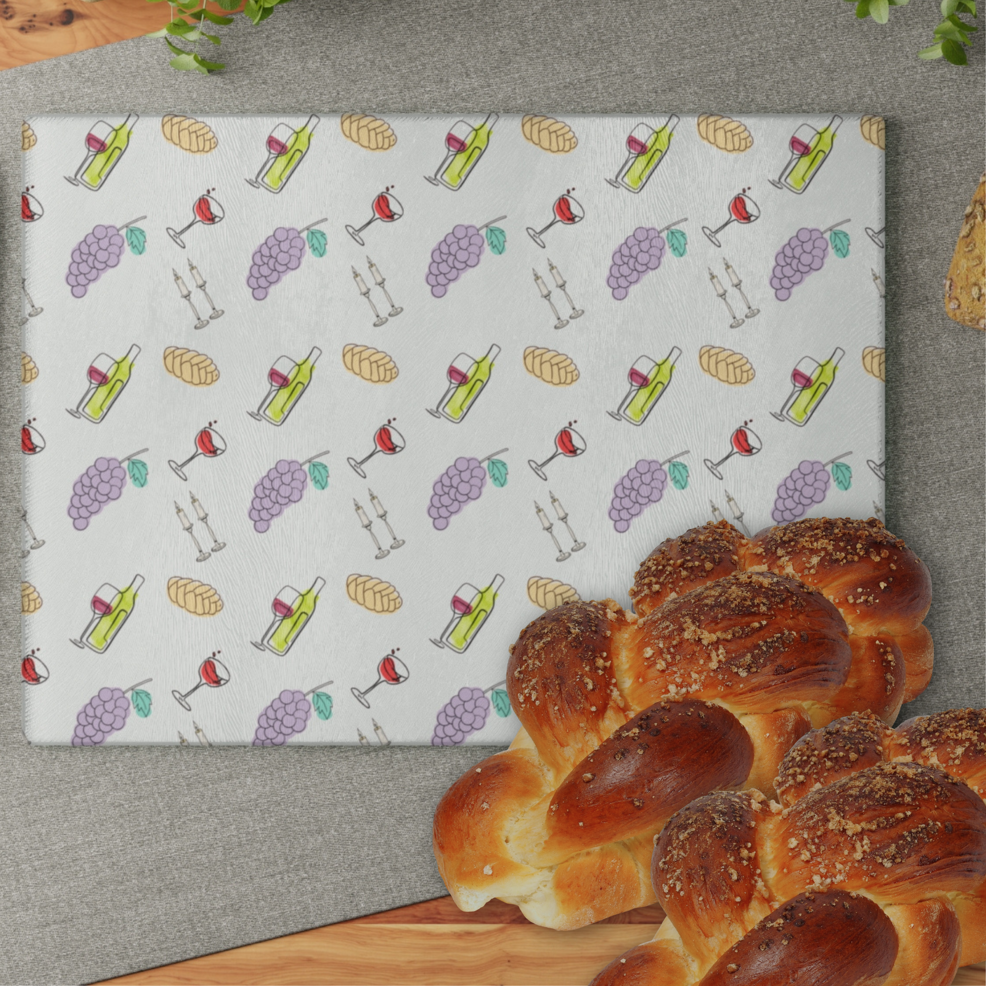Shabbat Challah Glass Board - Shabbat Illustrations