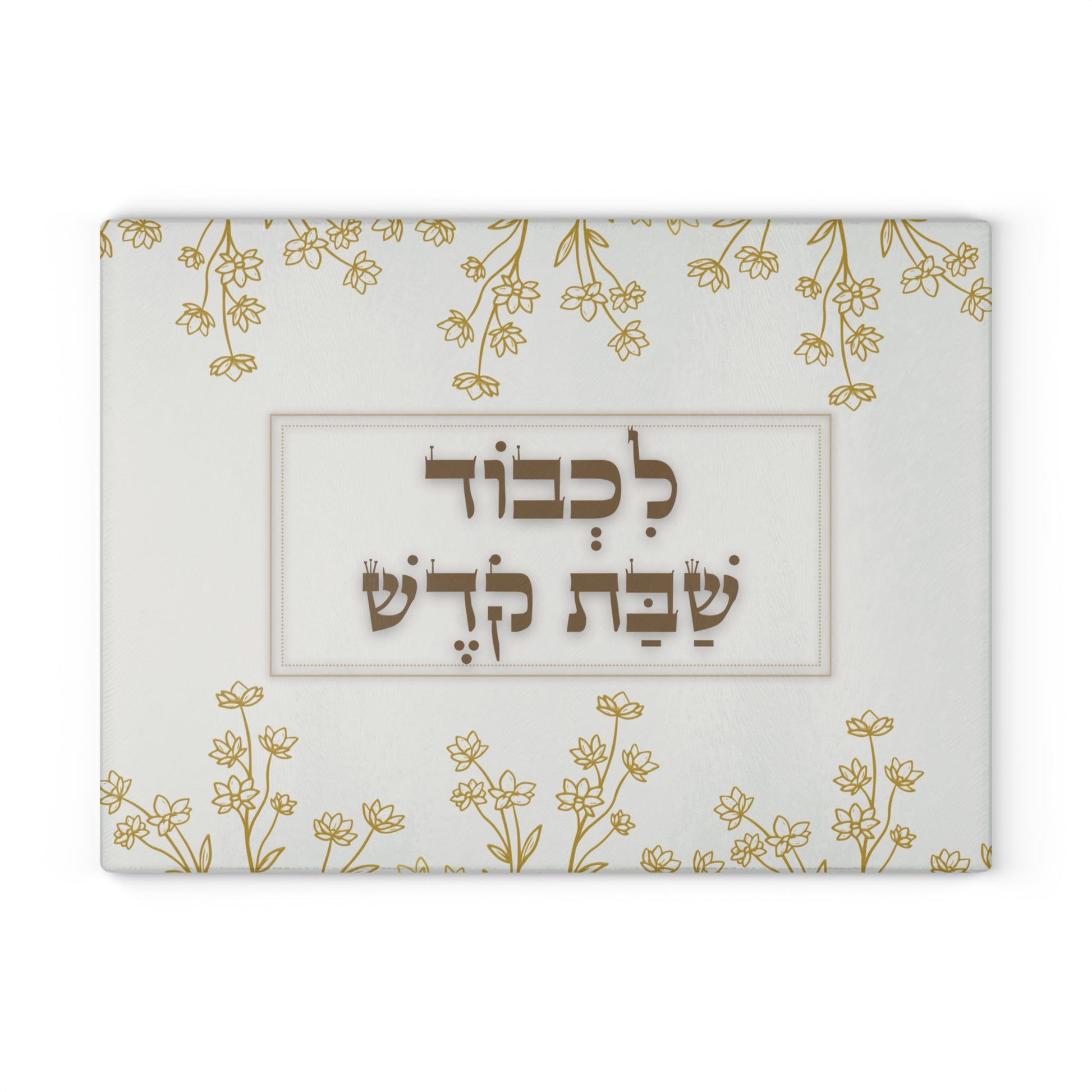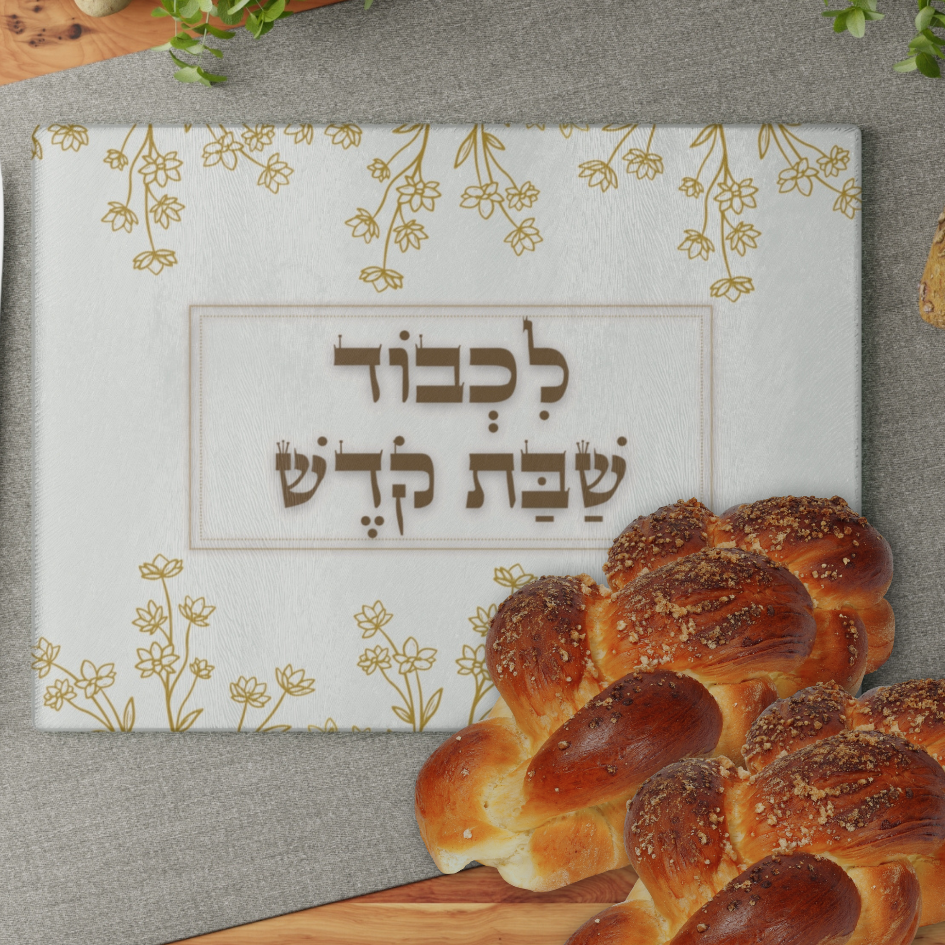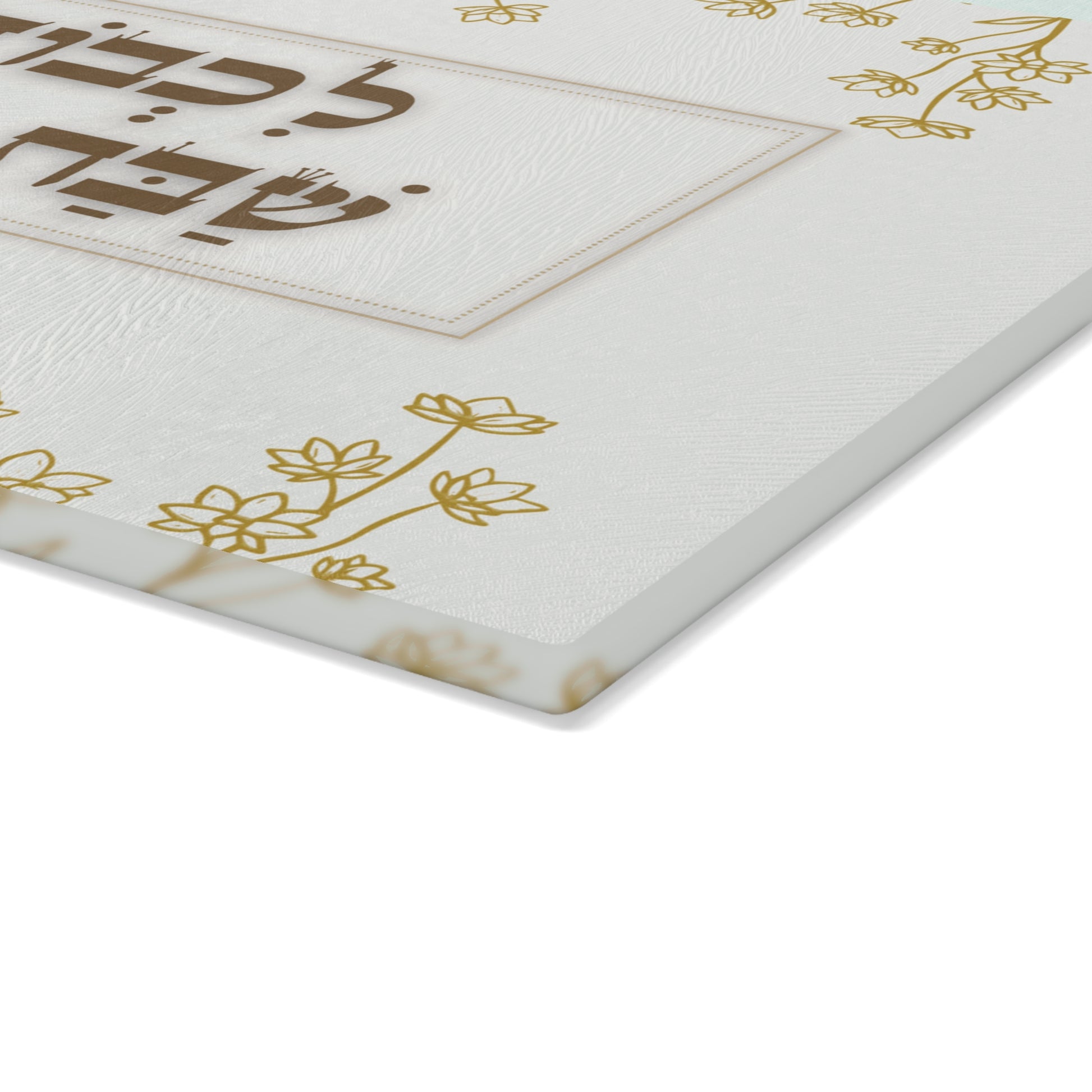 Shabbat Challah Glass Board With Hebrew Inscription 'Lechavod Shabbat Kodesh'