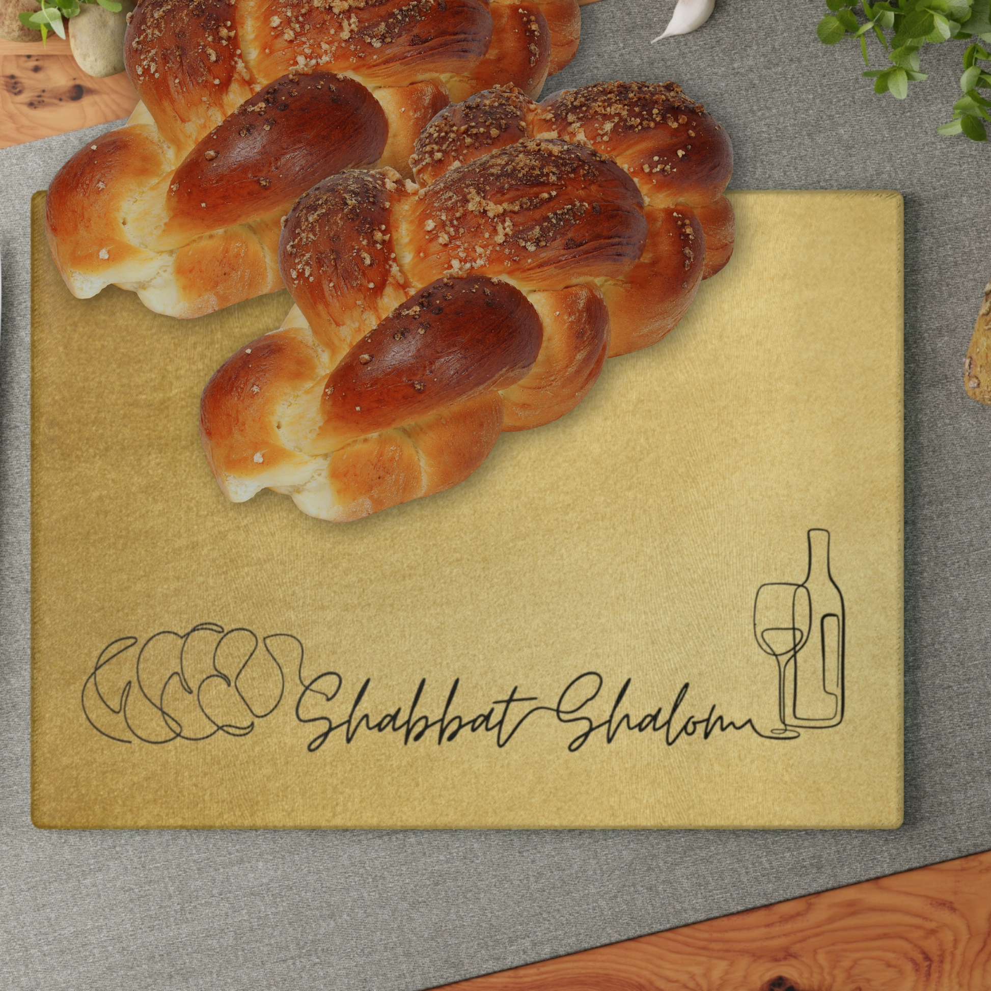 Shabbat Challah Glass Board With Shabbat Shalom Caption - Gold Shades