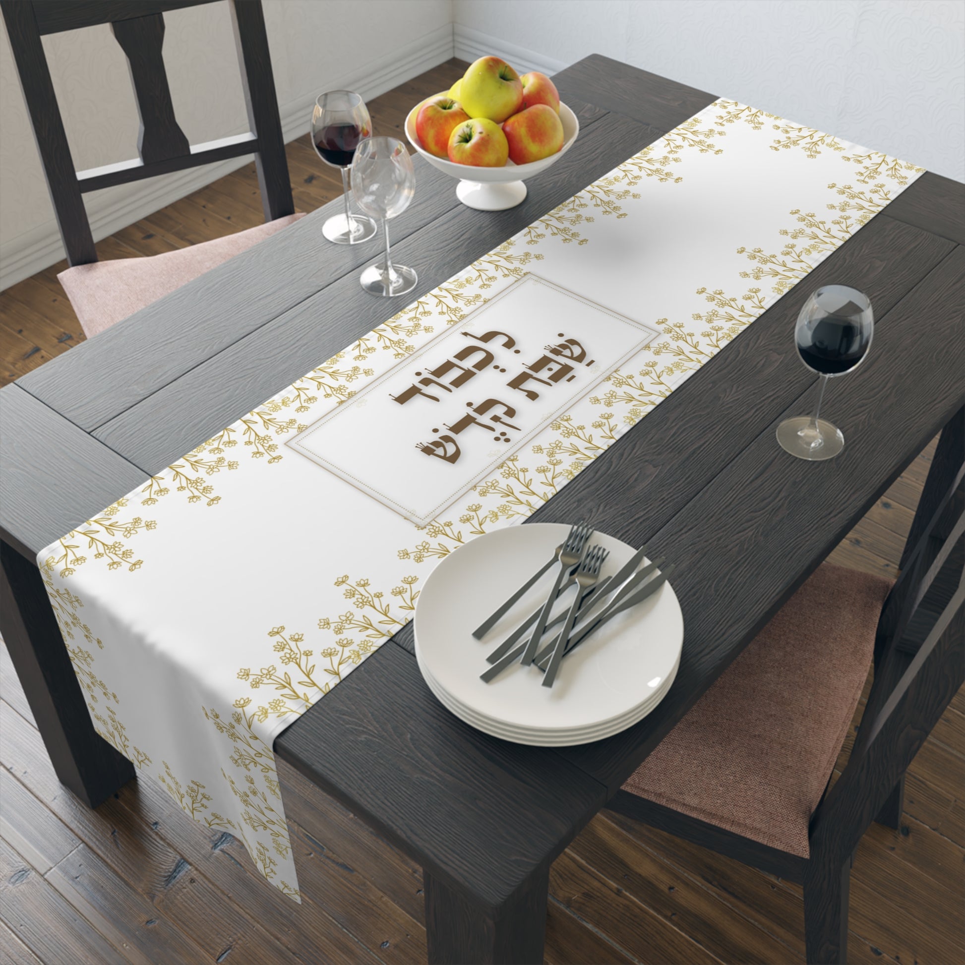 Shabbat Table Runner With Hebrew Inscription 'Lechavod Shabbat Kodesh'