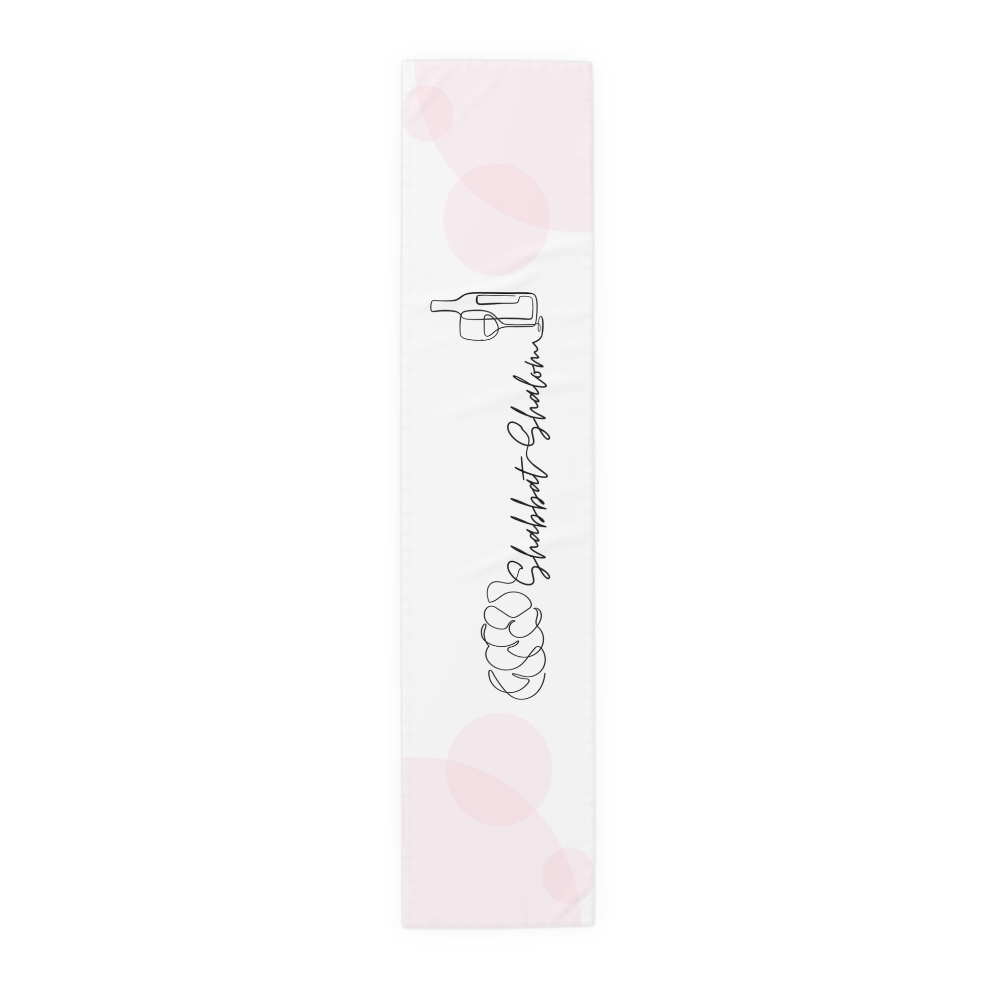Shabbat Table Runner With Shabbat Shalom Caption - Pink Circles