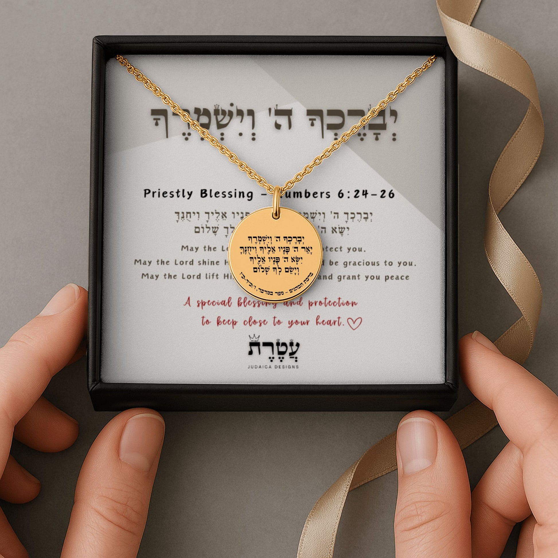 The Hebrew verse inscribed on this necklace is the Priestly Blessing (Birkat Kohanim):
